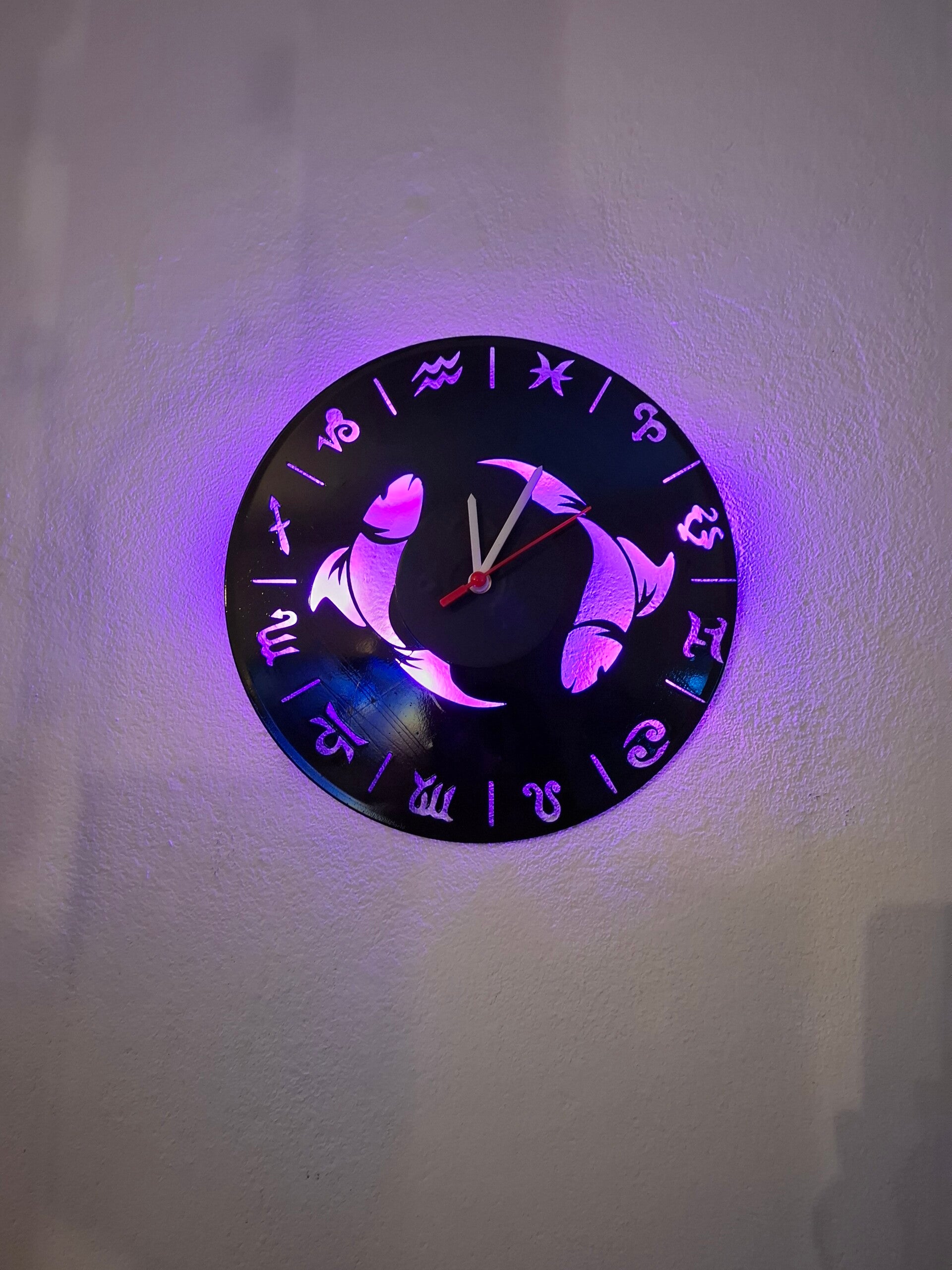 Wanduhr aus echter Vinyl-Schallplatte – Sternzeichen Fische (beleuchtet)