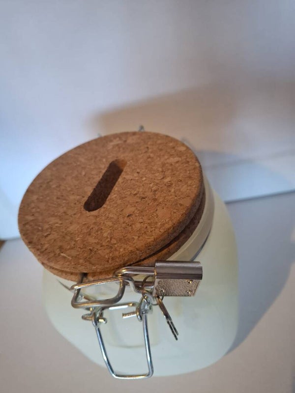 Diese charmante Spardose der Marke Fa. Hergo, Kreation GmbH, ist nicht nur ein praktisches Sparglas, sondern auch ein hübsches Accessoire für jeden Haushalt. Hergestellt in Deutschland, besticht sie durch ihr liebevolles Design und die Funktion, die sparen dabei leicht gemacht wird. Mit einem Korkdeckel versehen, sorgt sie für eine luftdichte Aufbewahrung Ihrer Ersparnisse. Geliefert wird sie zudem mit zwei Schlüsseln, um den Inhalt sicher verschließen zu können. Ihr ansprechendes gelbes Farbschema und das Motto "Für dich" machen sie zu einem persönlichen Begleiter beim Sparen.